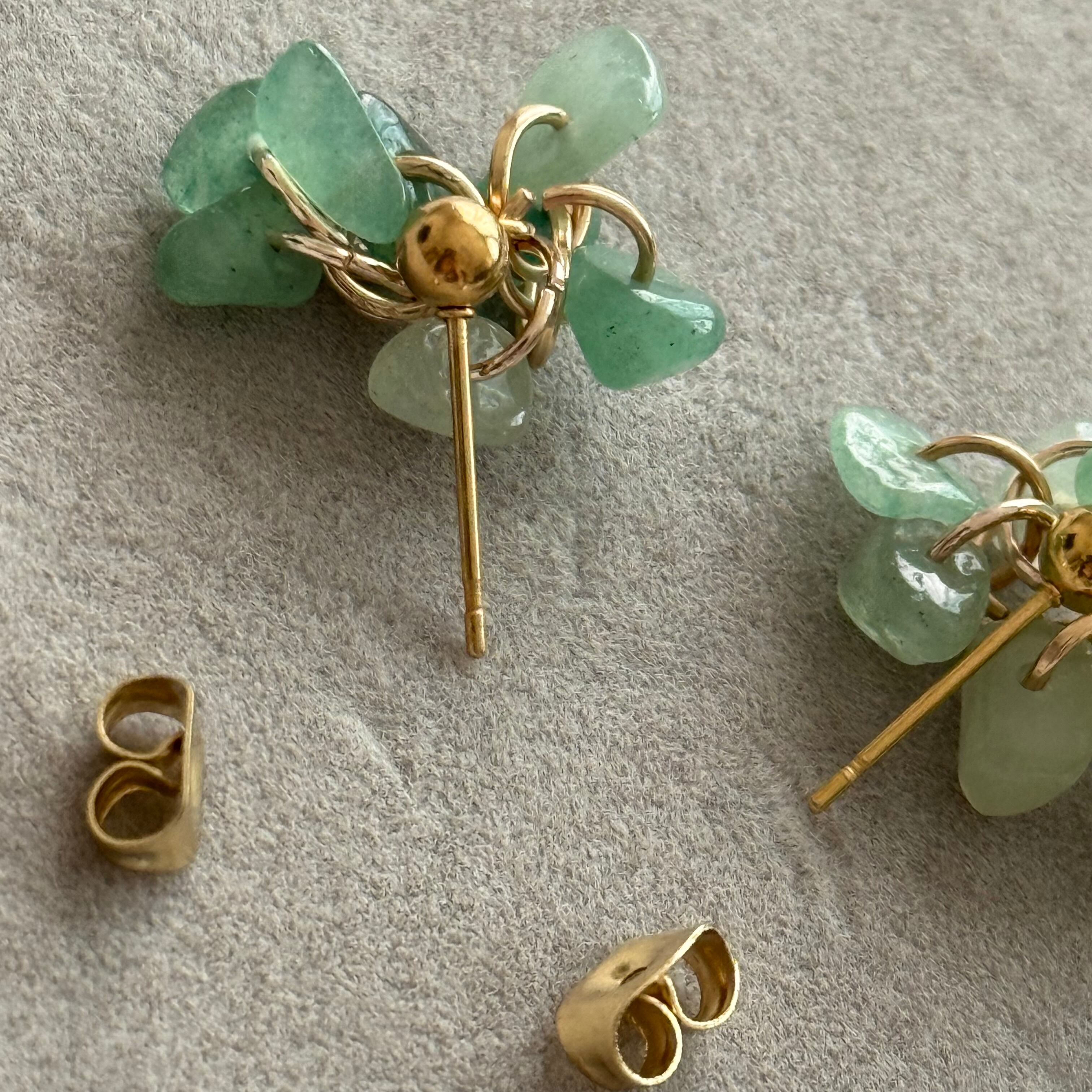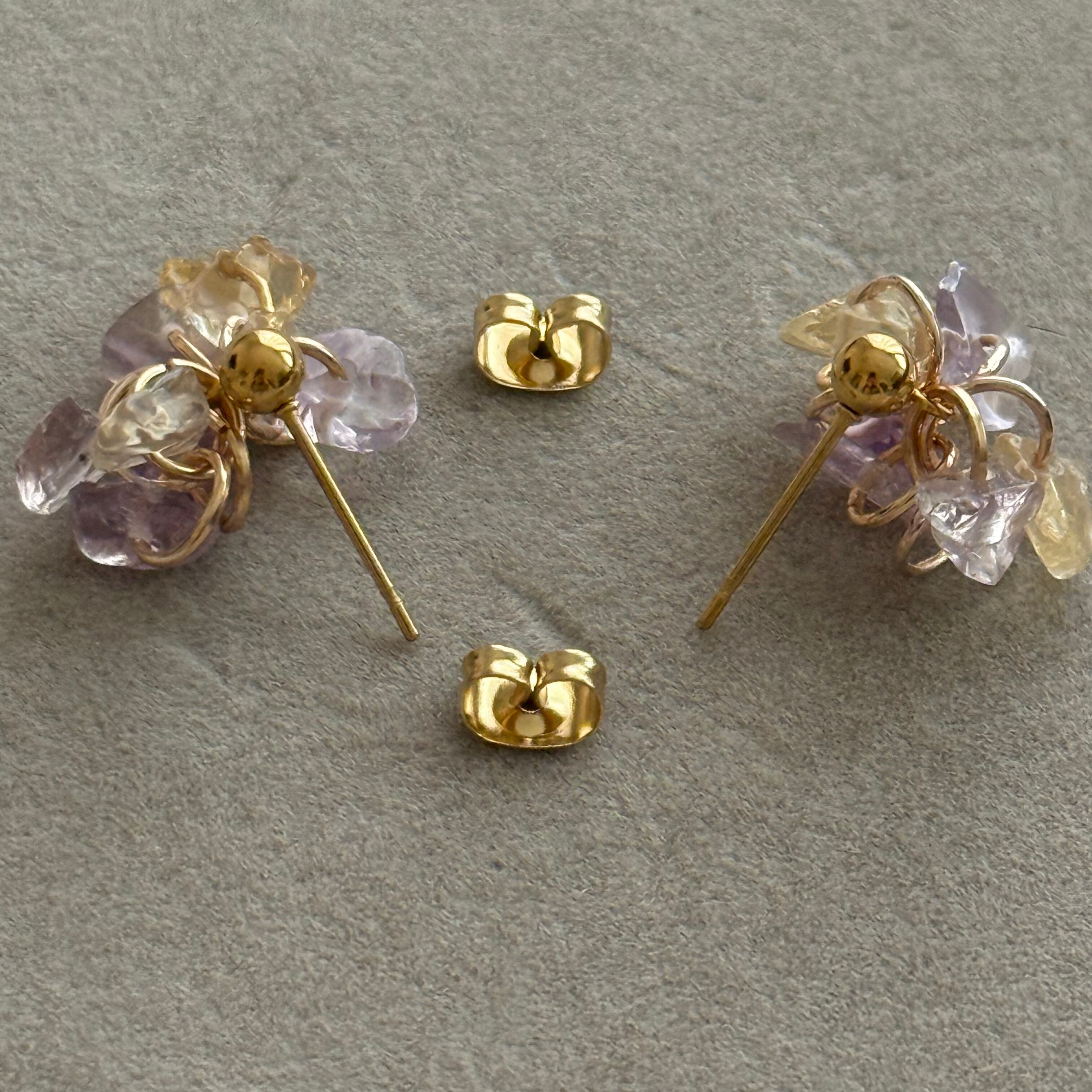 さざれの天然石を花びらに見立ててご用意したピアス。咲き誇る花のような華やかさを耳元に宿すことで、お顔周りがパッと明るい印象になります。