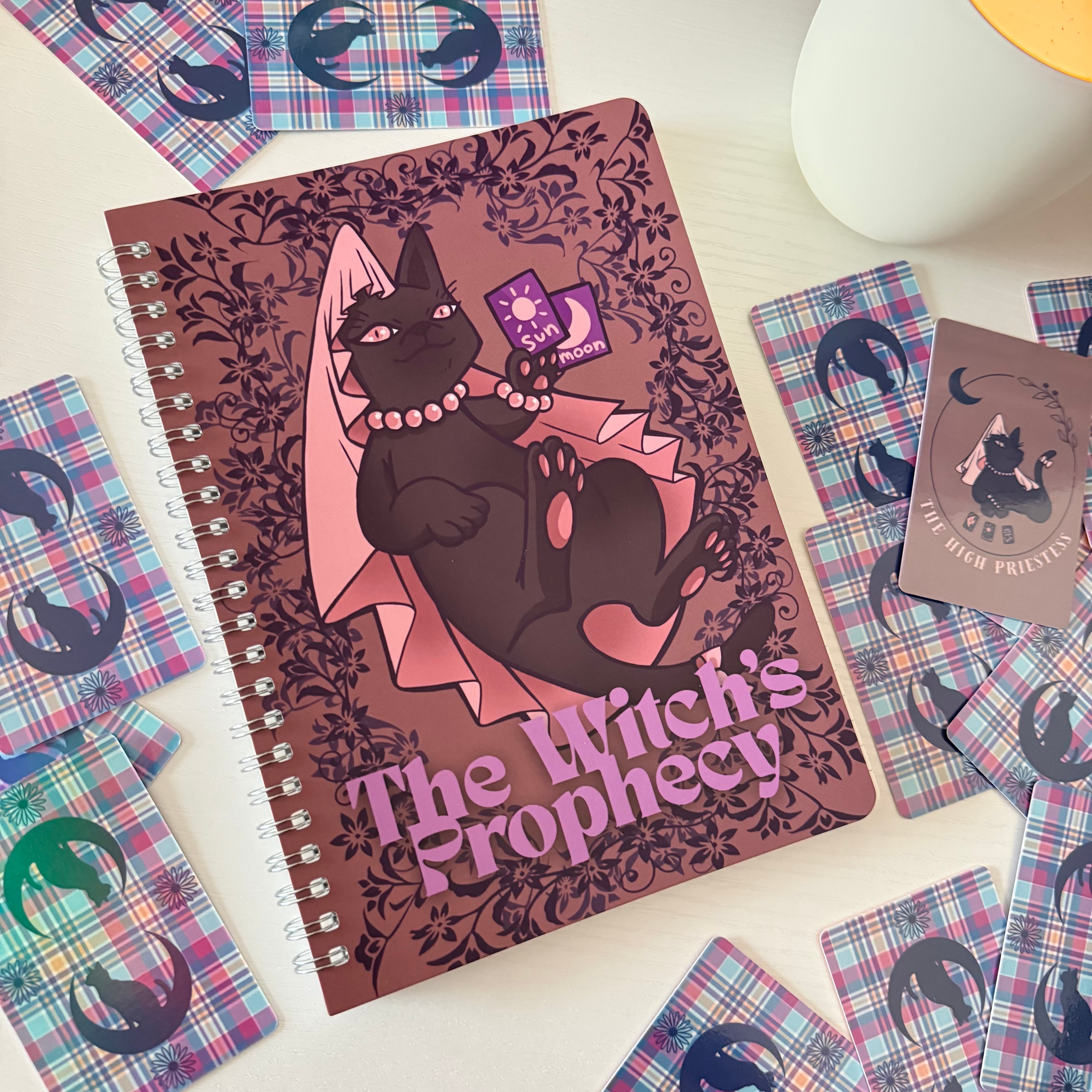 タロットにゃんこシリーズ女教皇にゃんこデザインのノート。タロットにゃんこ総選挙にて人気投票一位を獲得した女教皇にゃんこの新イラストデザイン。The Witch's Prophecy[魔女の予言]